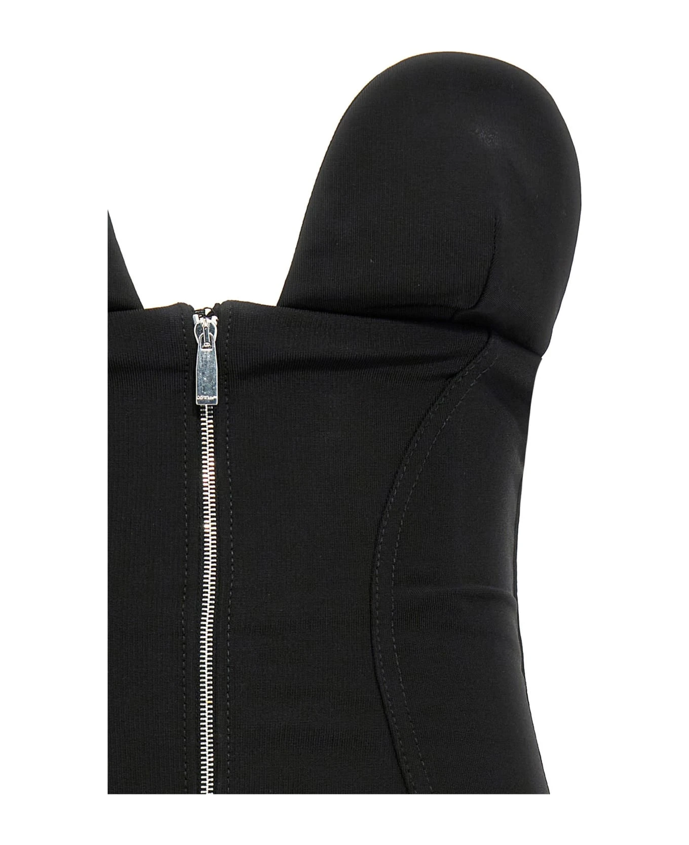 ‘Ablohland’ dress in crepe fabric, off the shoulder model with sweetheart neckline, front zip closure, equipped with adjustable and removable shoulder straps.