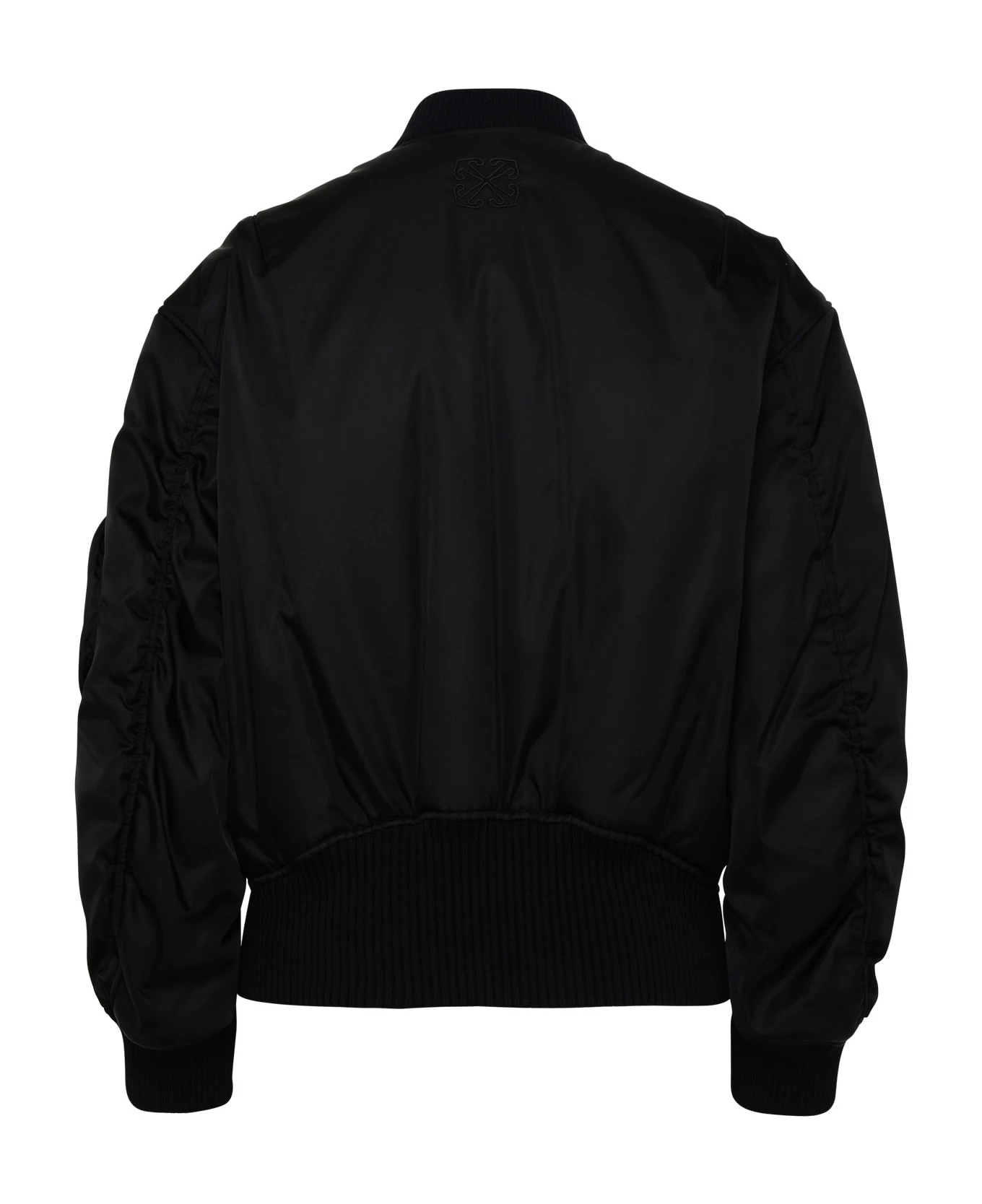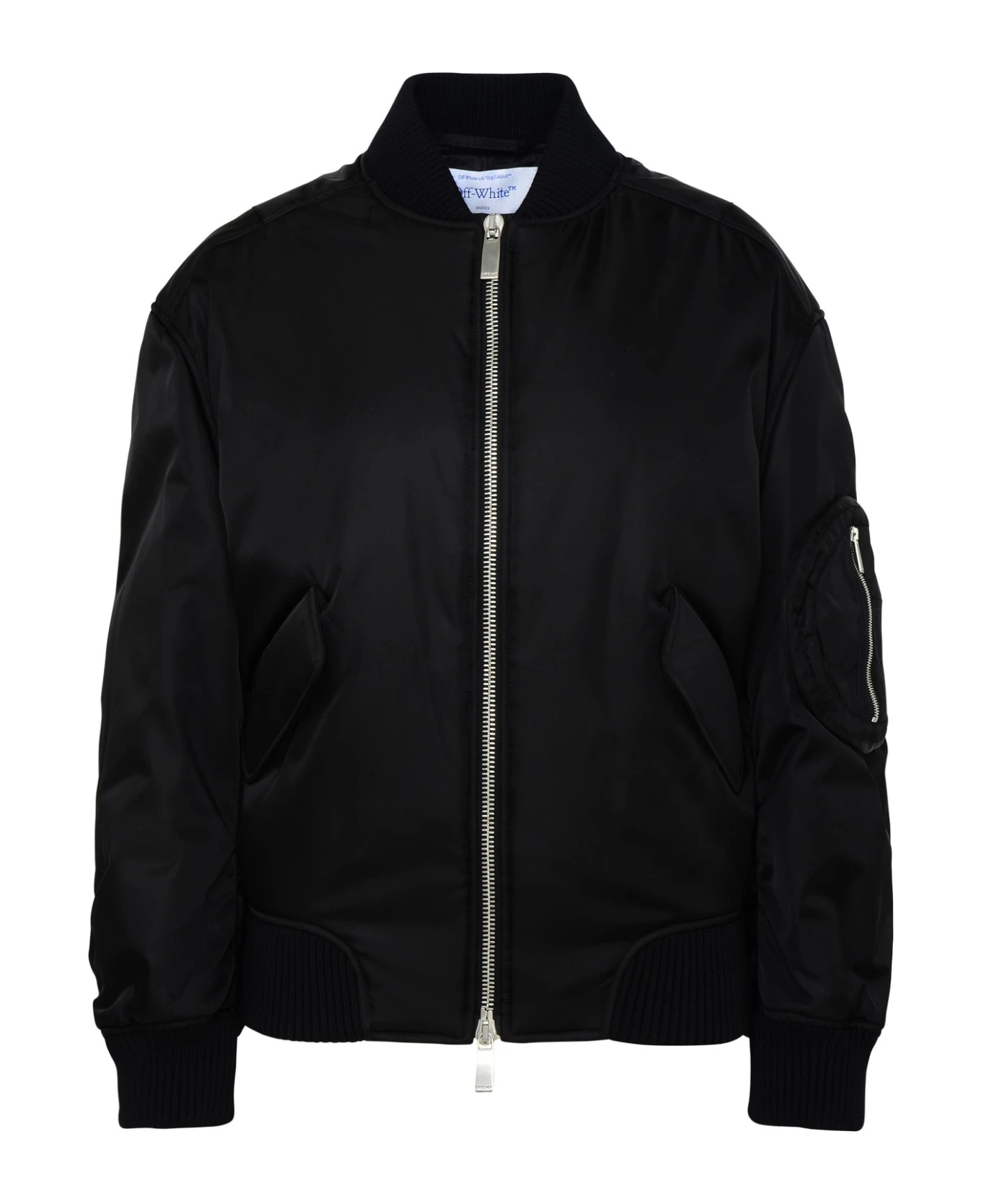 Oversized bomber jacket with ribbed knit collar, flap and button pockets on the front, zip round pocket on the left sleeve, Arrow logo embroidery on the back, ribbed knit cuffs and hem, front zip closure