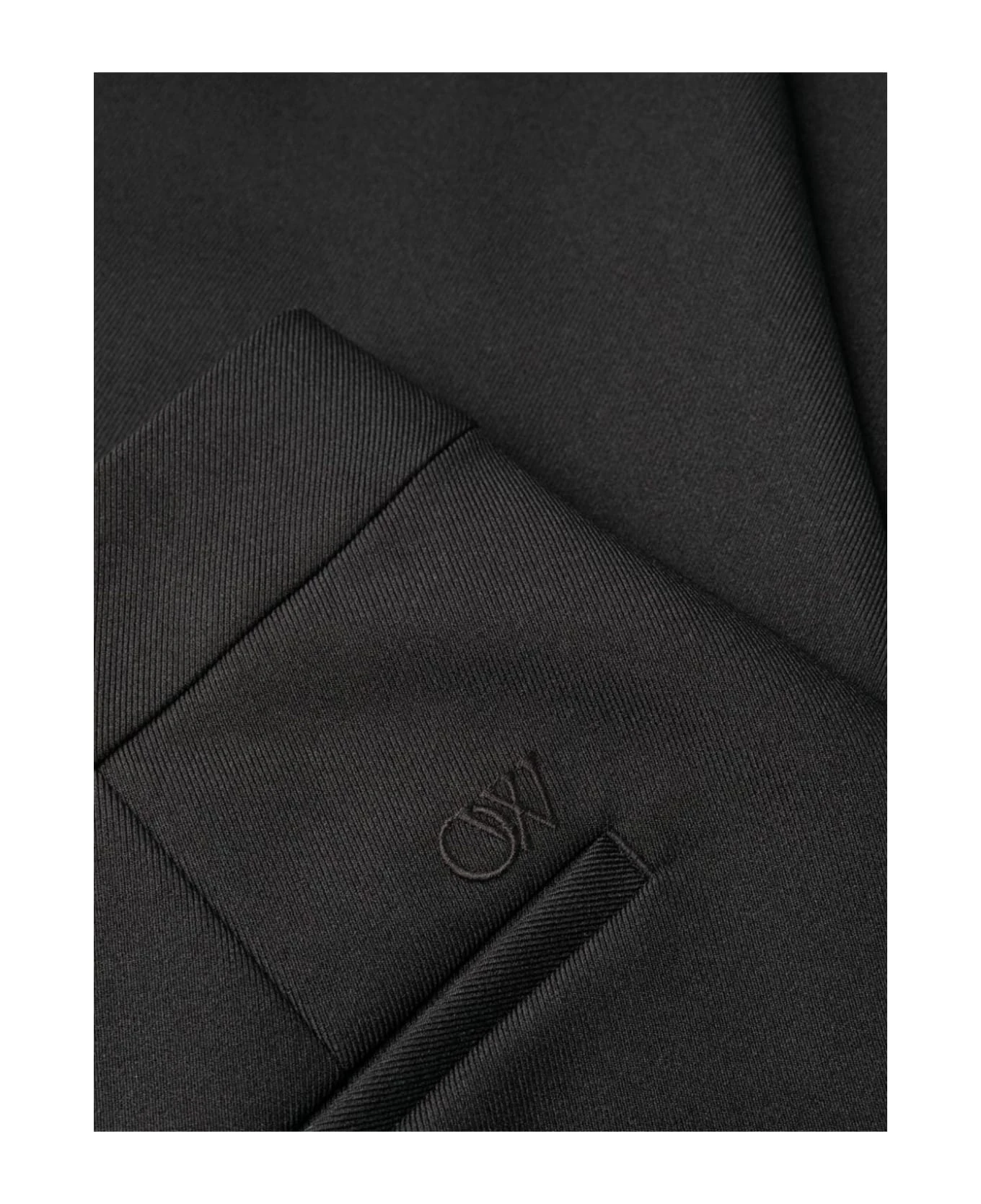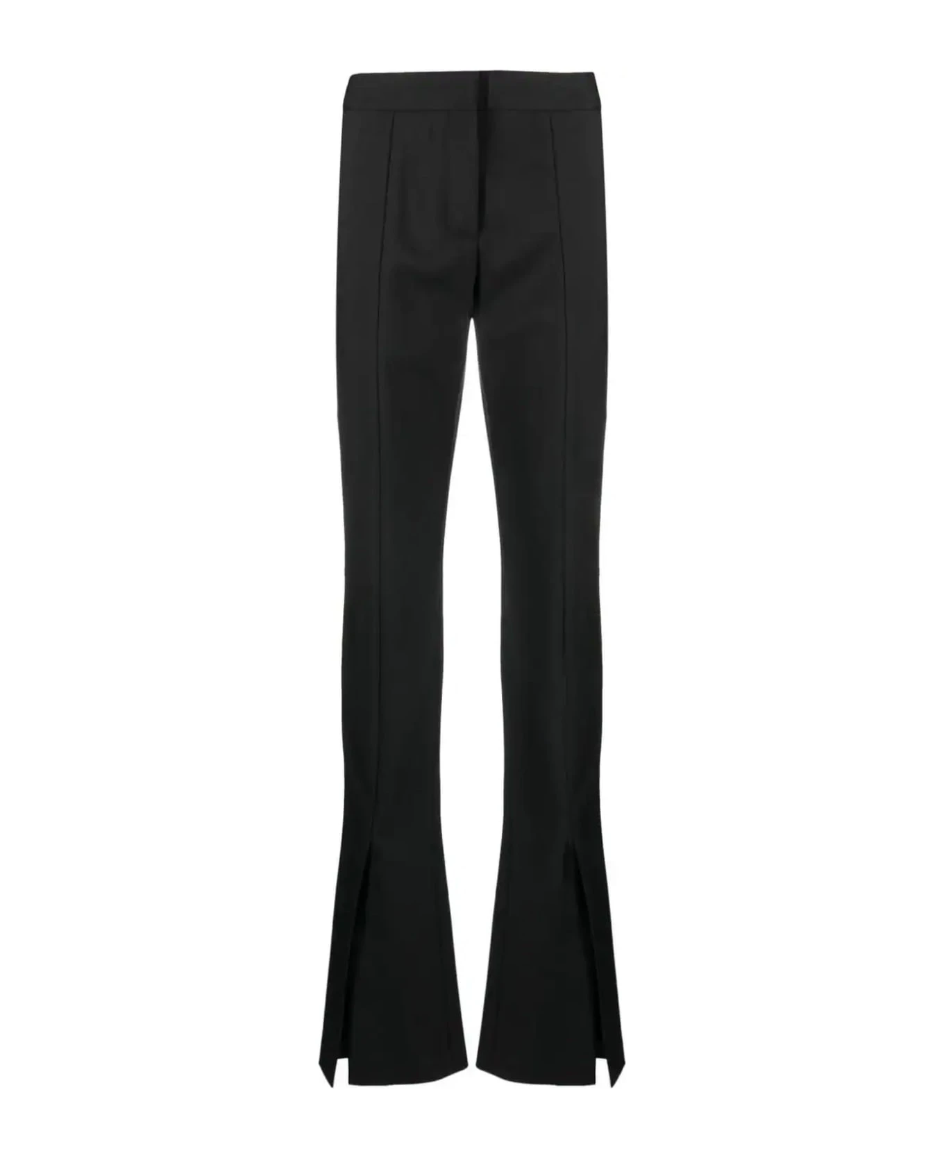 Black Tech Drill flared trousers, slim cut, flared, concealed front zip fastening, two rear welt pockets, front slit