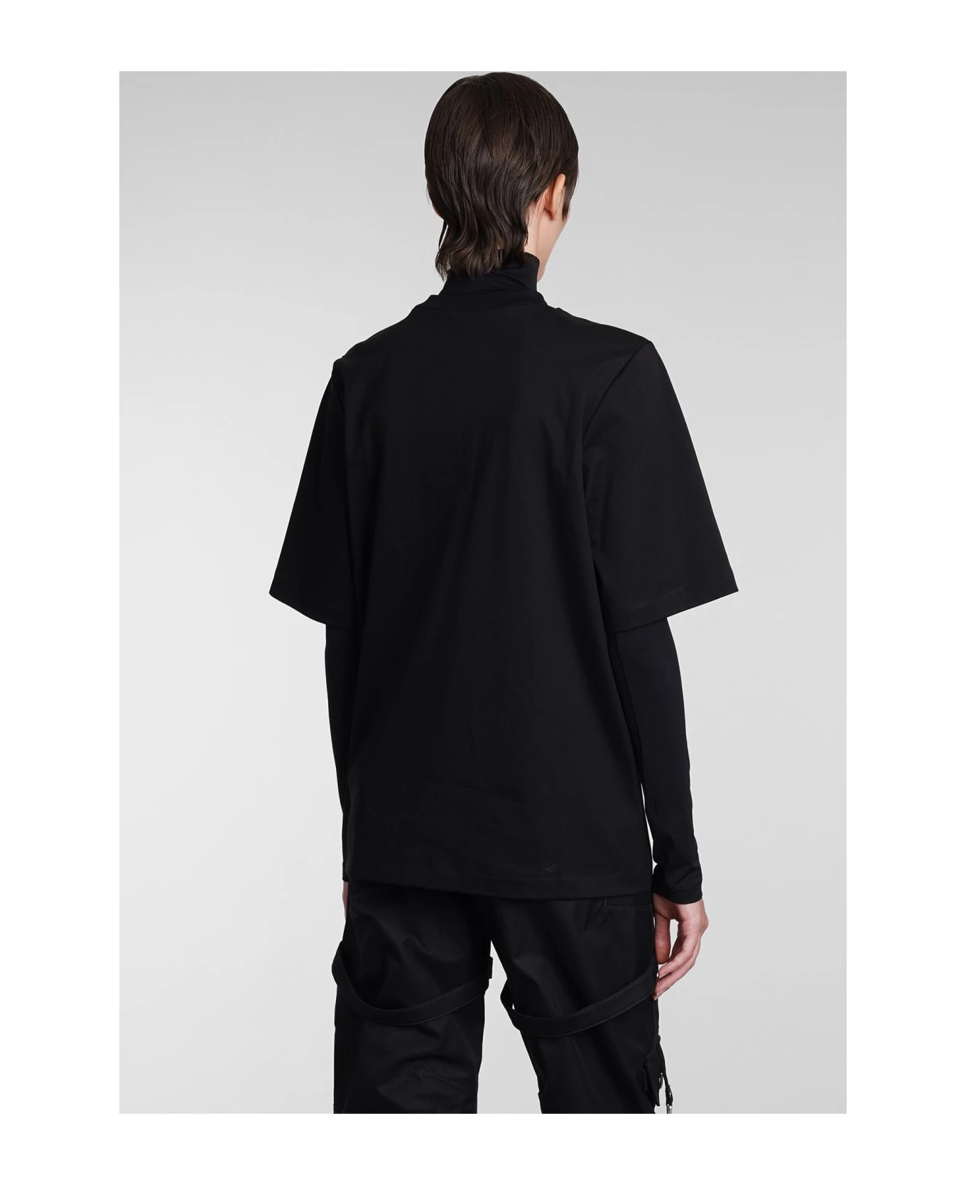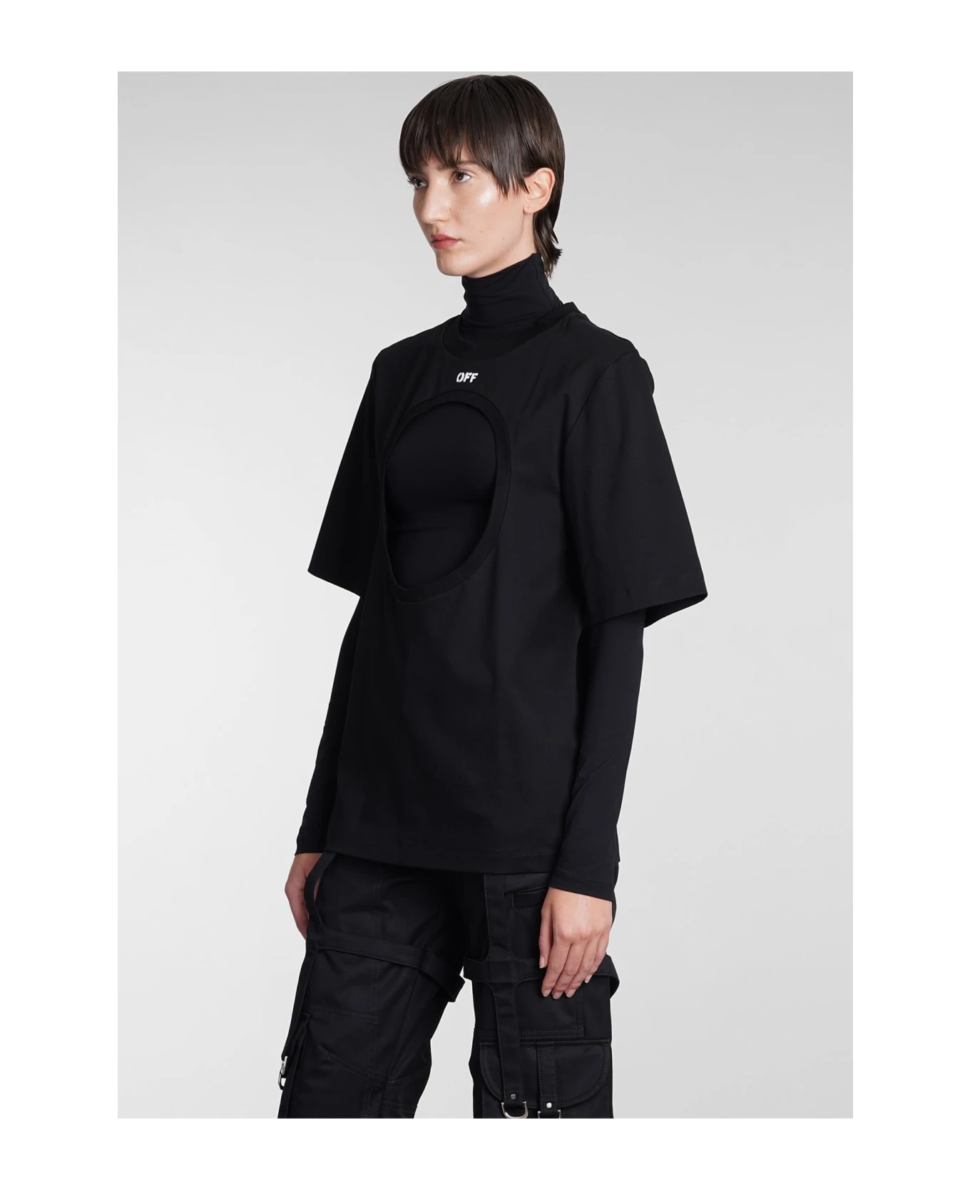 Knitwear in black polyamide, tiered design, cut out detail, long sleeves, front logo, 87% polyamide, 13% elastan, model is 180 cm and wears size 40, Made in Portugal