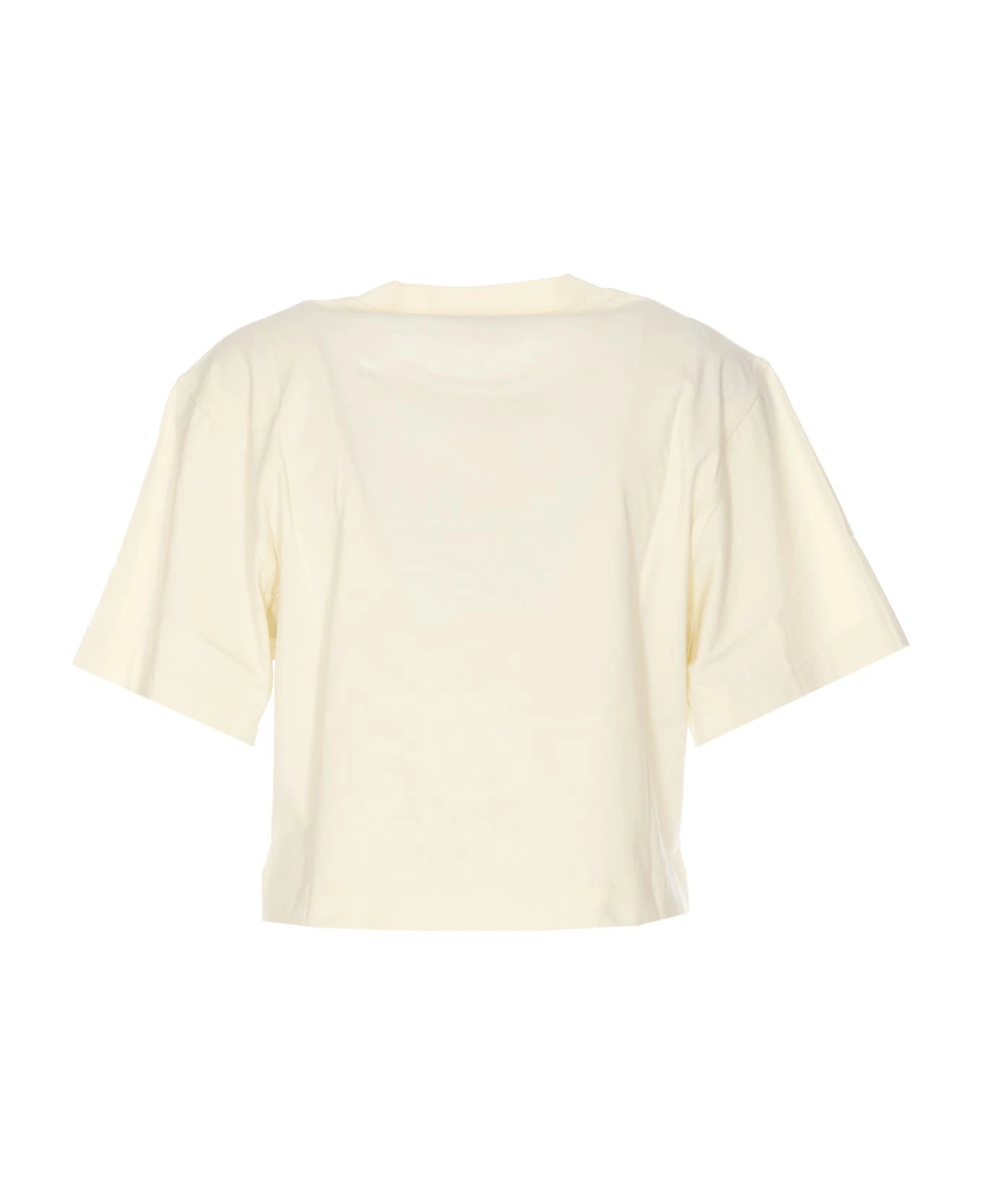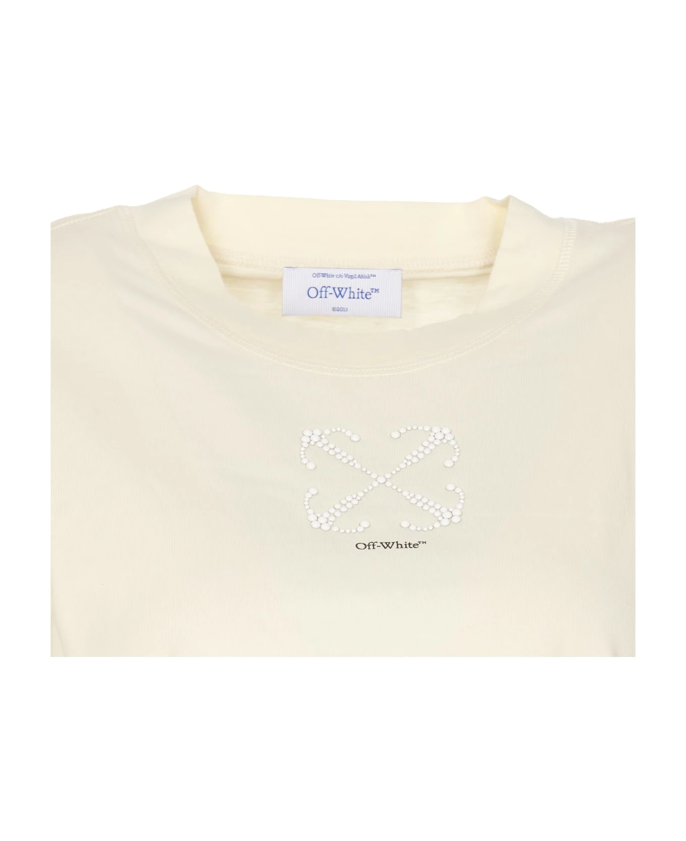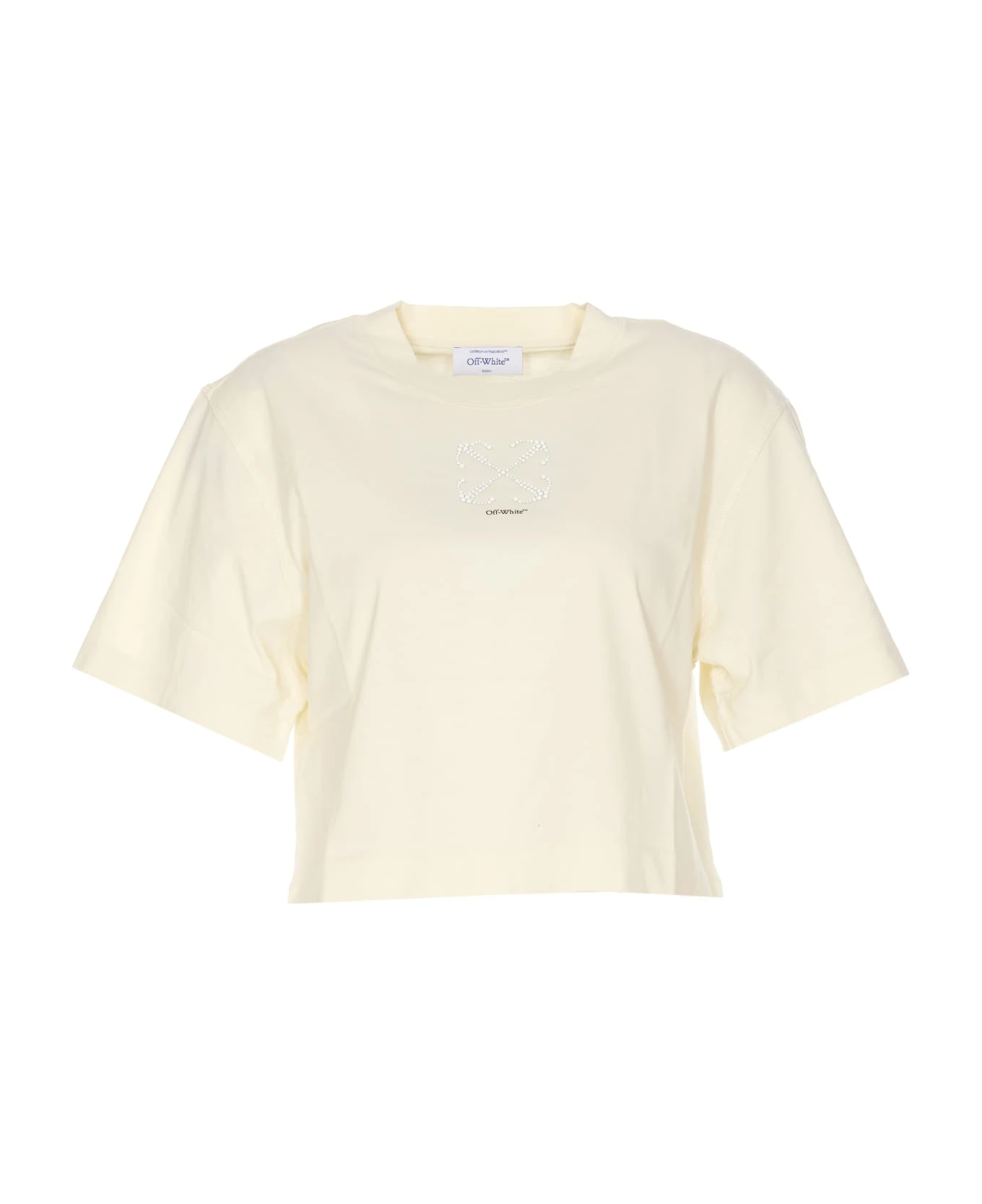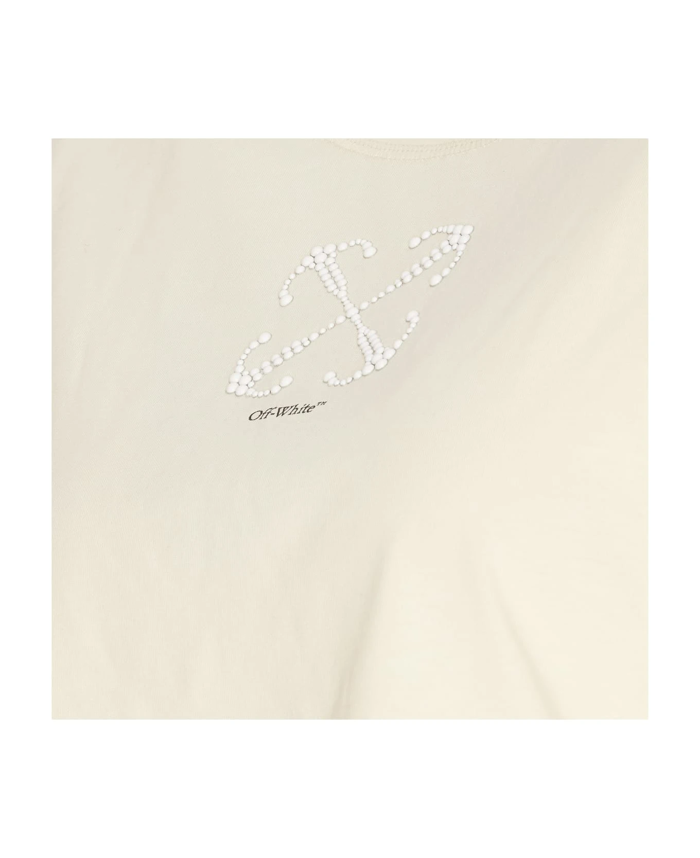 Off White white t-shirt, round neck, cropped model, frontal tone on tone logo