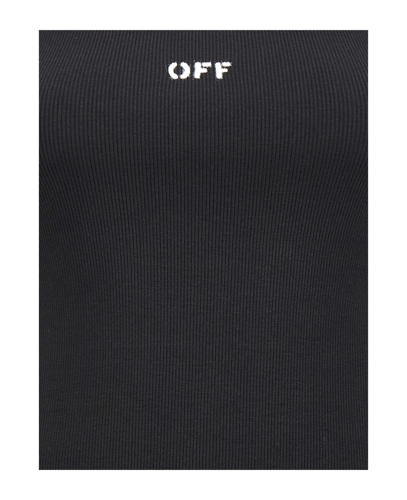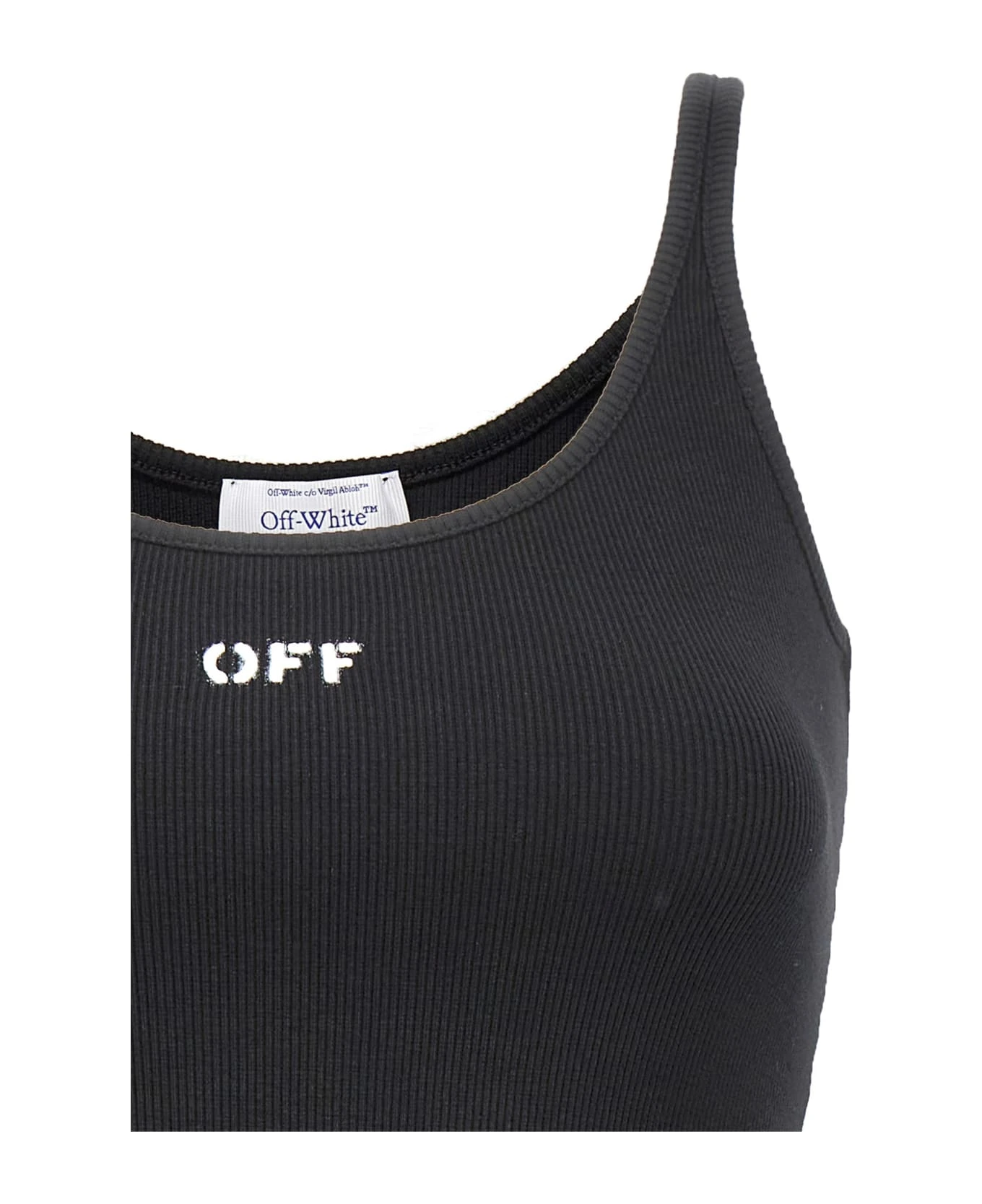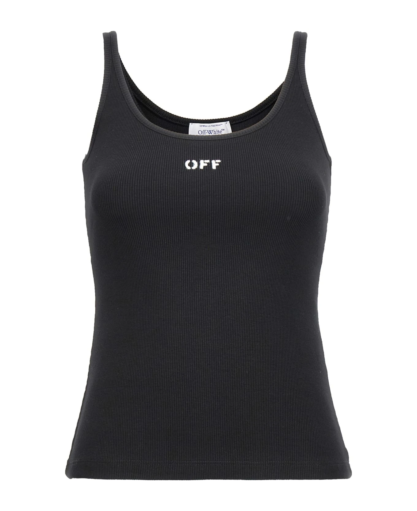 Off Stamp’ ribbed cotton tank top with front logo print and a round neckline.