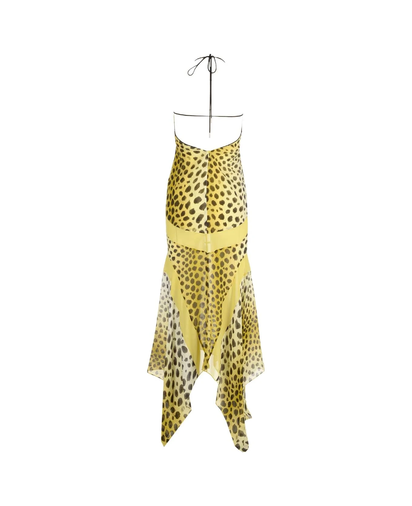 “Saskia” animalier dress in stretch jersey from The Attico, with asymmetric skirt, low waist, concealed zip.