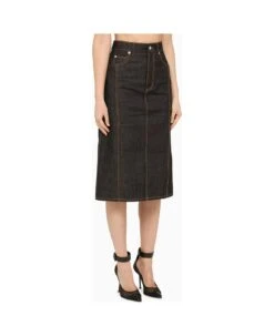 Alexander McQueen Blue Mini-skirt With Pleated Detail At The Back In Stretch Cotton Denim Woman
