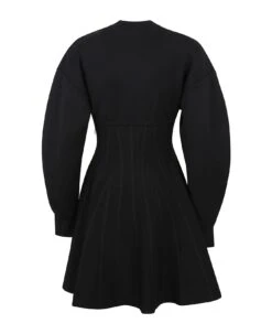 Alexander McQueen Blue Mini Dress With Cut-out Detail And Pleated Skirt In Cotton Denim Woman