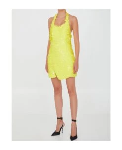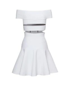 Alexander McQueen White Off-the-shoulders Mini Dress With D Rings In Viscose Blend Knit Woman