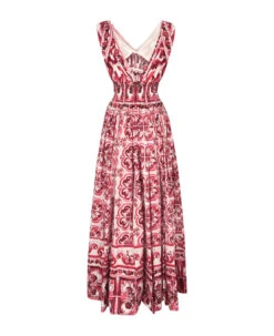 Dolce & Gabbana Fuchsia And White Blouse With Wide Sleeves And Majolica Print In Stretch Silk Woman