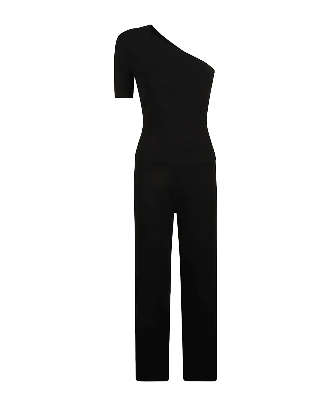 one-shoulder wide-leg jumpsuit from STELLA MCCARTNEY featuring black, crepe texture, asymmetric neck, one-shoulder, fitted waistline, concealed side zip fastening, wide leg and short sleeve. We’ve partnered with Good On You an independent agency that rates how brands perform in relation to their impact on the planet, people and animals, with a multi-criteria rating simplified to a five points scale. In order to be awarded our conscious label, larger brands need to score a minimum of four out of five (‘Good’), while smaller brands must score at least three out of five (‘It’s a start’). This item comes from a brand rated four out of five (‘Good’) by Good on You. Please note, this is a brand-level rating and does not guarantee that this product is made with conscious materials.. Learn more about what makes a product Conscious on our Conscious Criteria page.