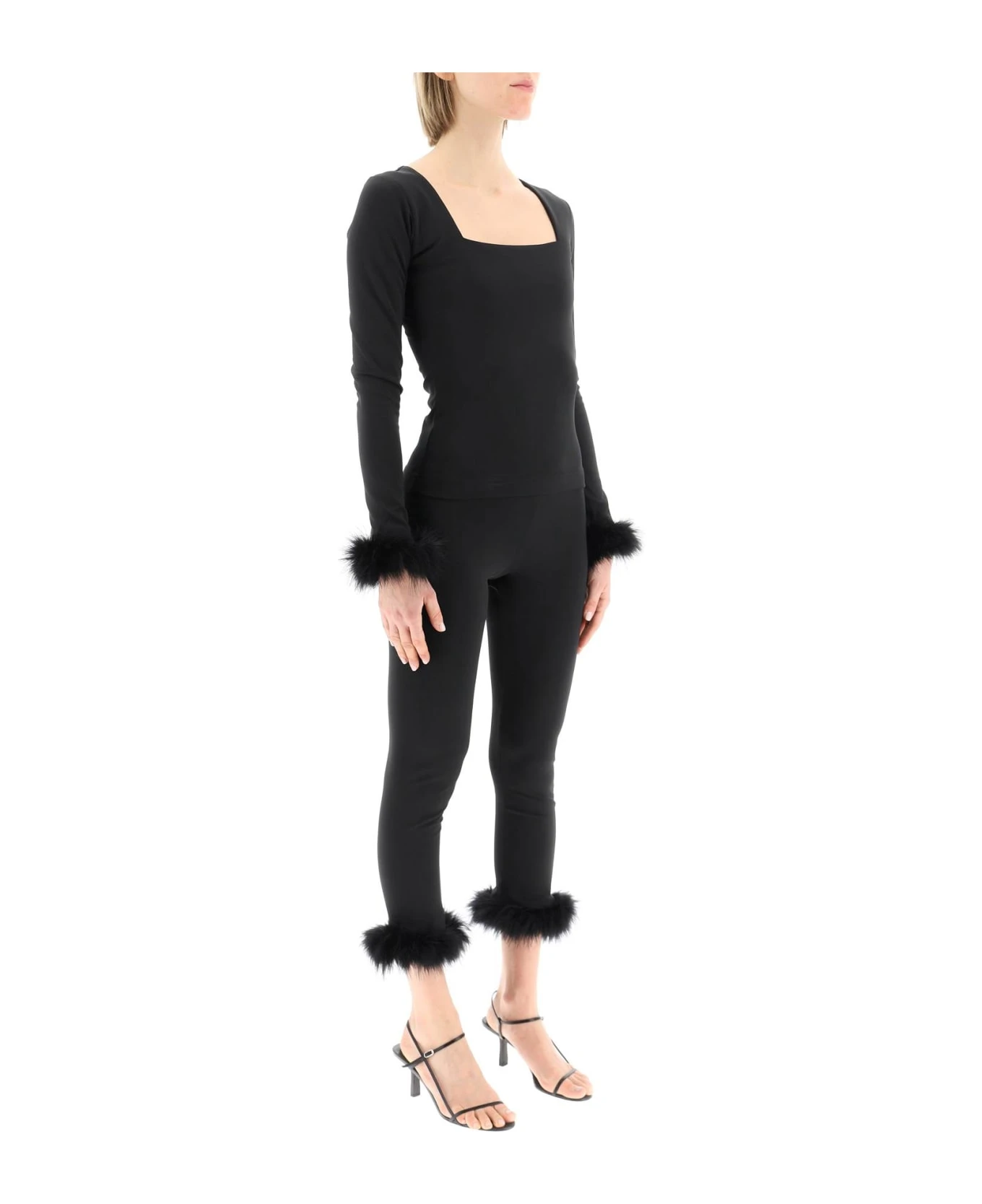 The Weekend Chic set by SLEEPER in recycled stretch jersey with removable ostrich details at cuffs. Long-sleeved top with squared neckline and cropped leggings with elasticated waist. The model is 177 cm tall and wears a size XS.