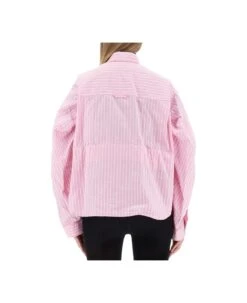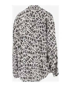 Balenciaga Two-tone ‘minimal’ Blouse Wiith ‘all-over’ Stripes Logo Print In Viscose Blend Woman