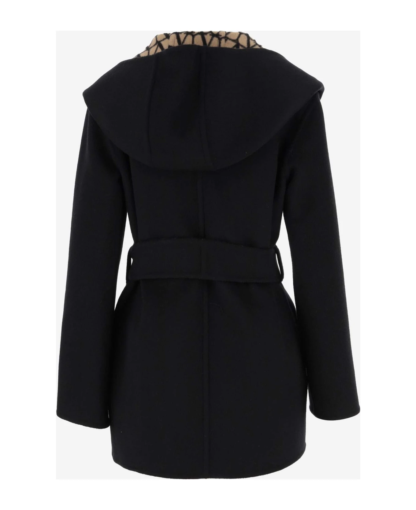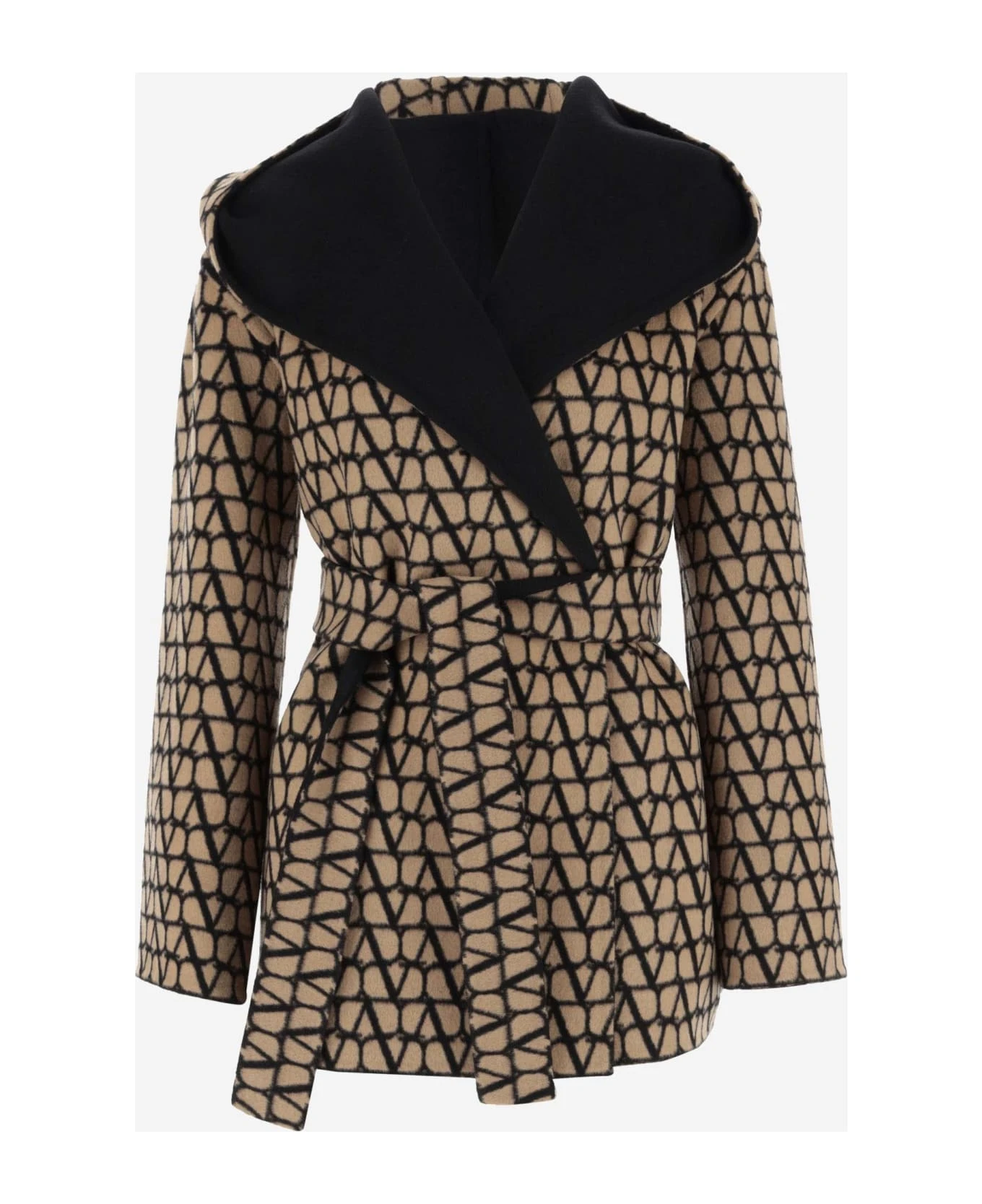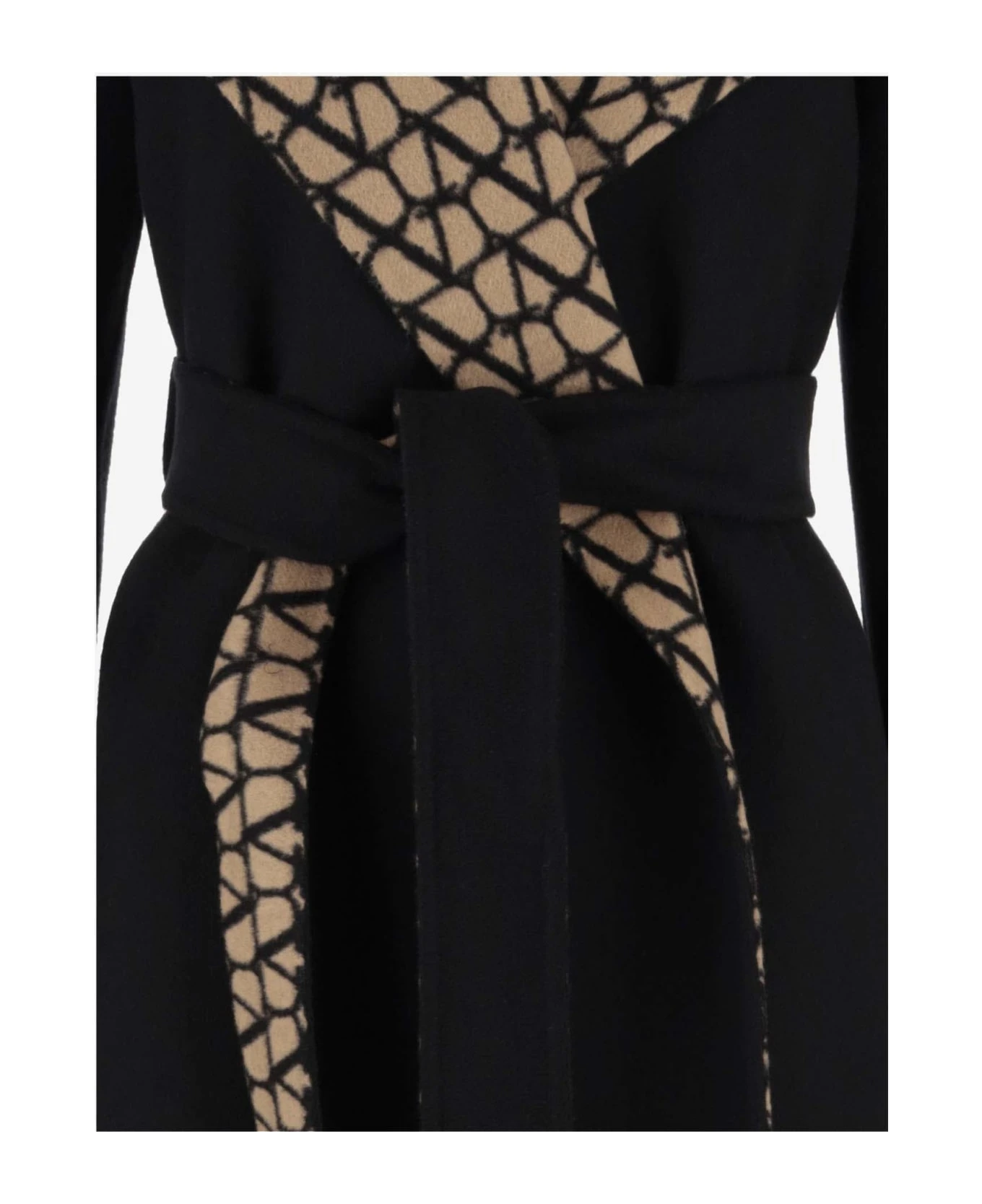 Valentino Coat in Double Coat Toile Iconographe Reversible Belt at the waist Unlined VLogo all over Black, Beige Made in Italy Composition: 99% Virgin Wool, 1% Silk