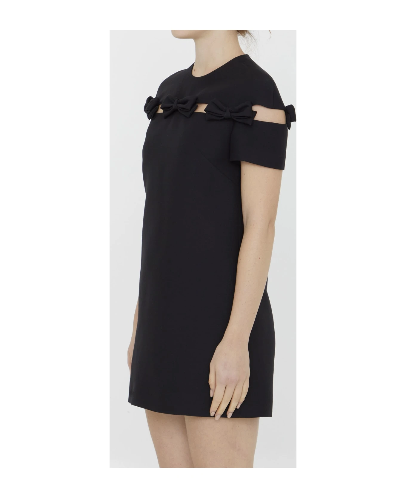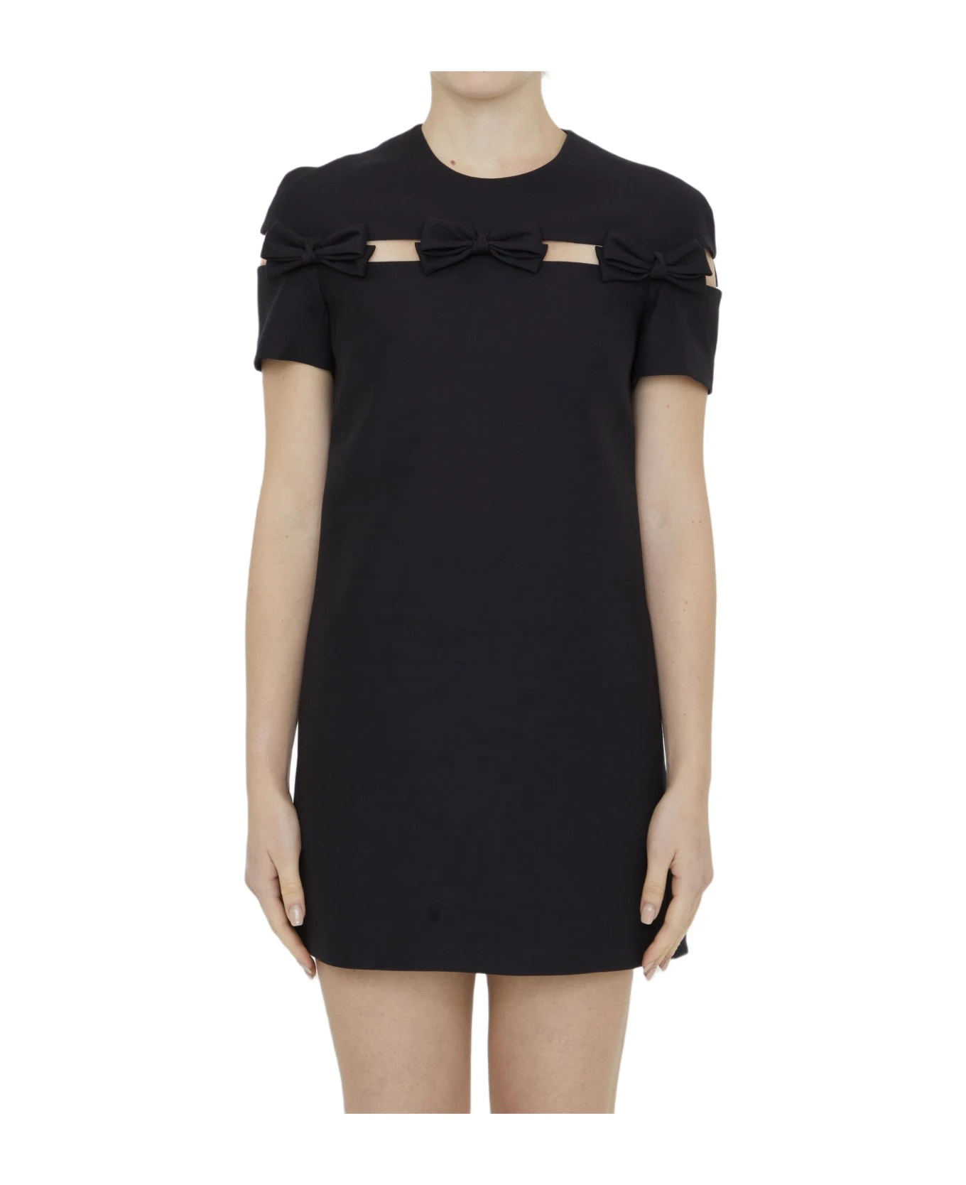 Valentino short dress in black Crepe Couture with cut-out details with bows. Rear zip closure. Regular fit.