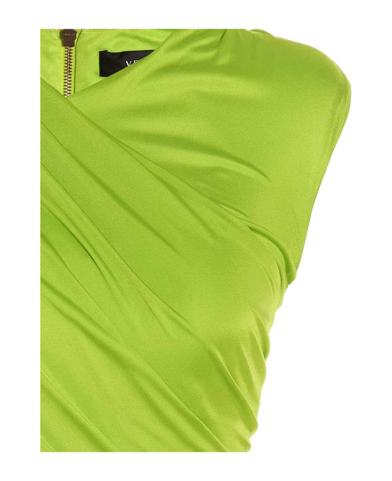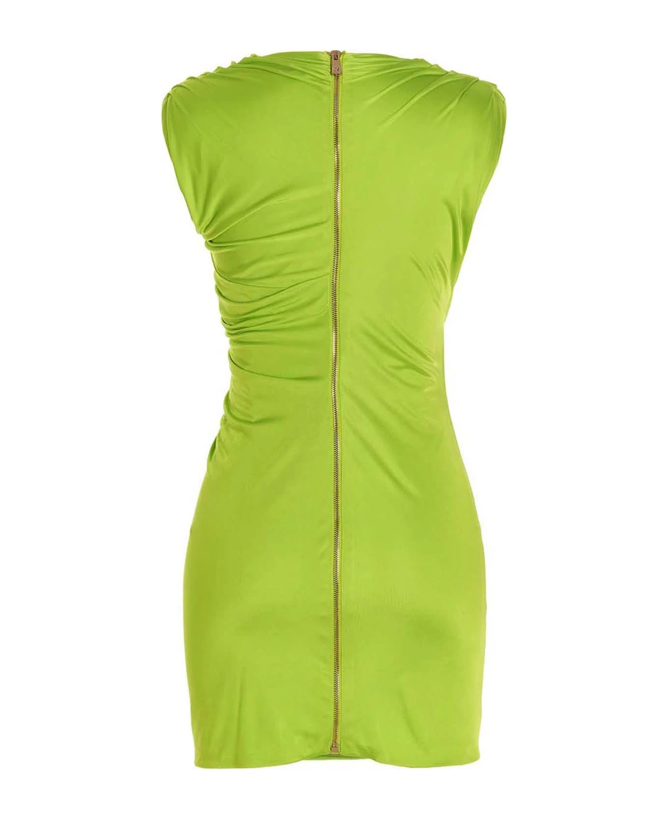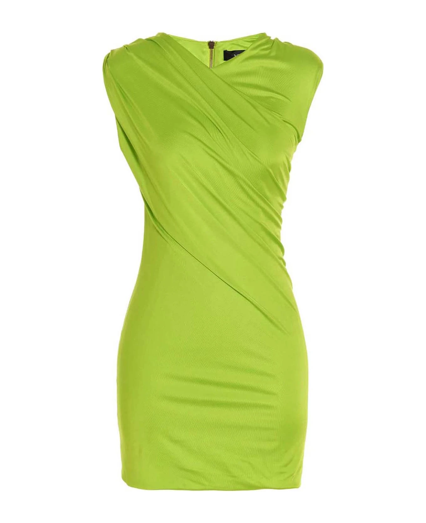 ‘Cocktail’ sleeveless draped dress in viscose with crew neck, back zip closure.