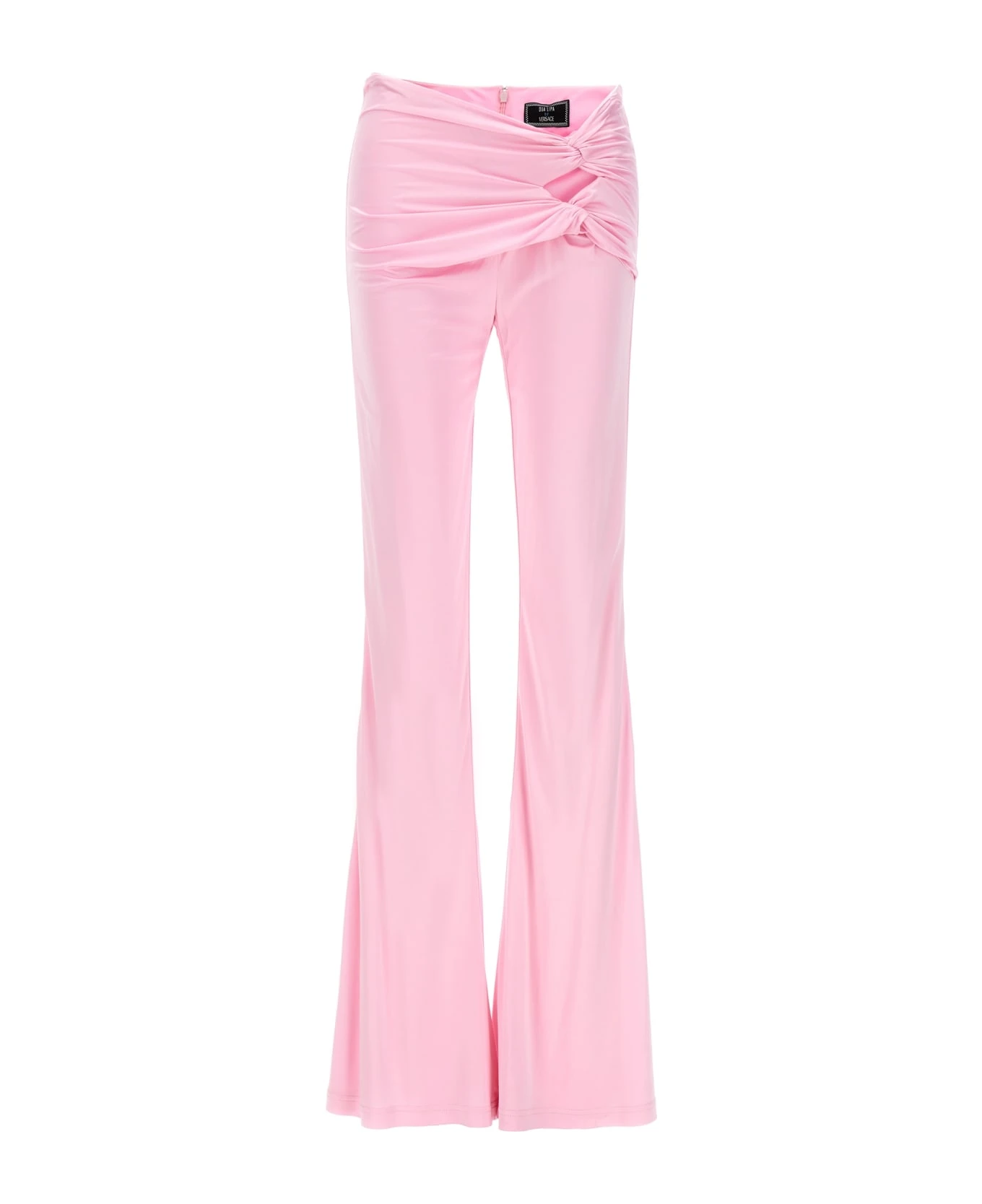 Viscose pants with knot detail and cut out at the waist, flared leg, back zip closure.