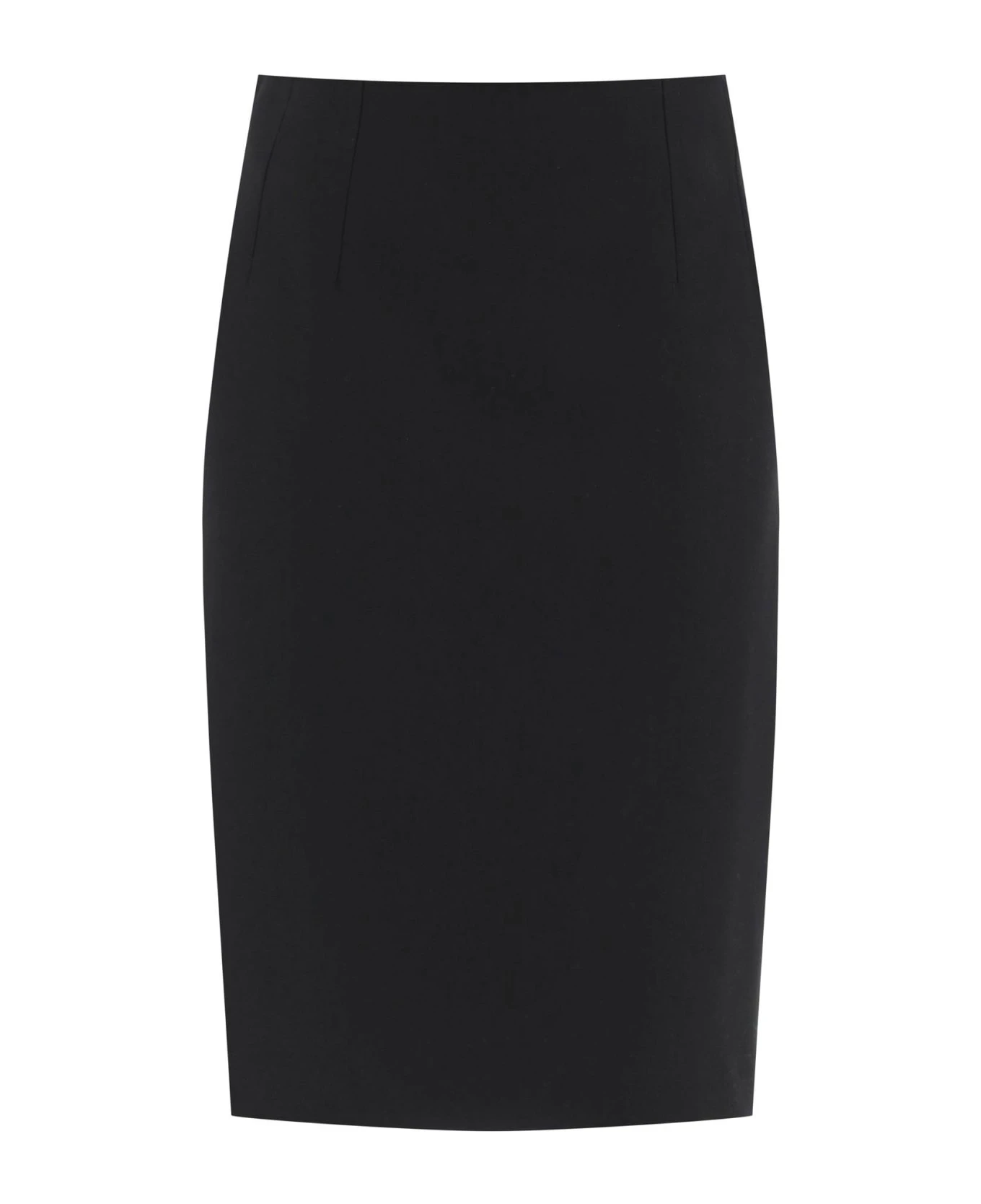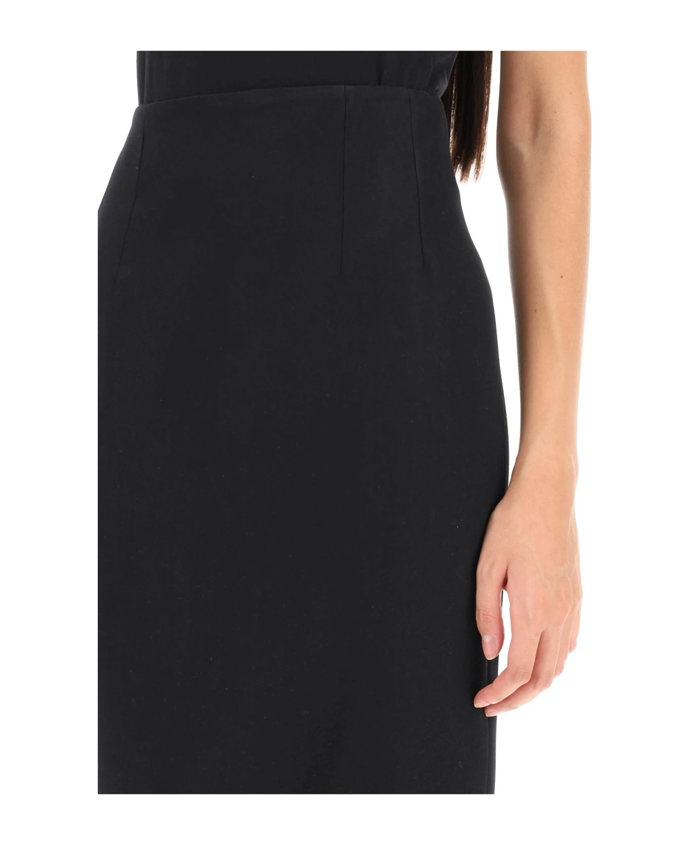 Versace pencil skirt crafted from pure virgin wool grain de poudre, featuring a high waist and back vent. The hem falls just below the knee. Back invisible zip closure, full lining. The model is 177 cm tall and wears a size IT 40.