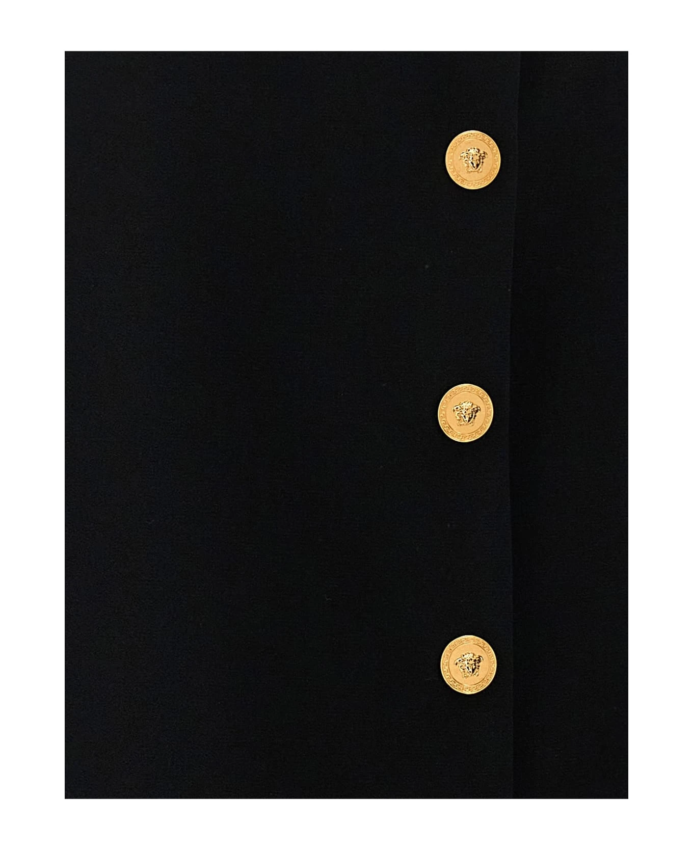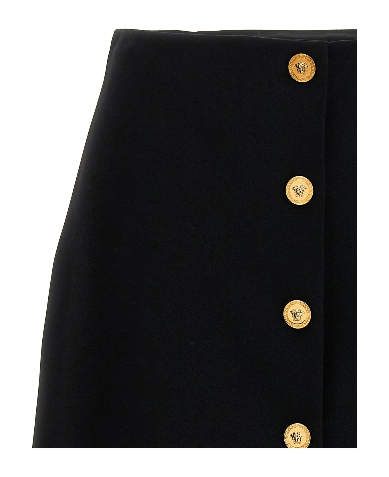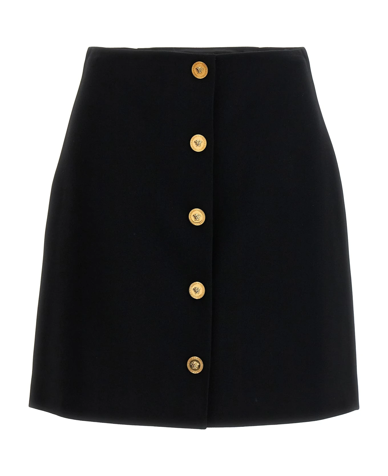 Viscose blend skirt with front ‘Medusa’ button closure.