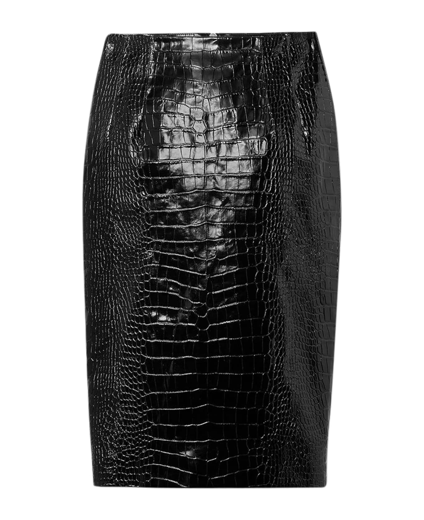 – High-waisted midi skirt in leather with embossed crocodile effect