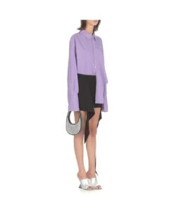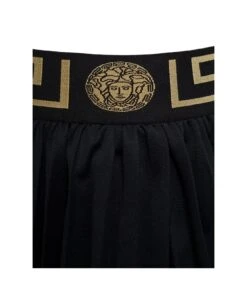 ‘Medusa 95’ top in wool and silk blend, model with rigid inner corset with front frappa with metal logo, strapless.
