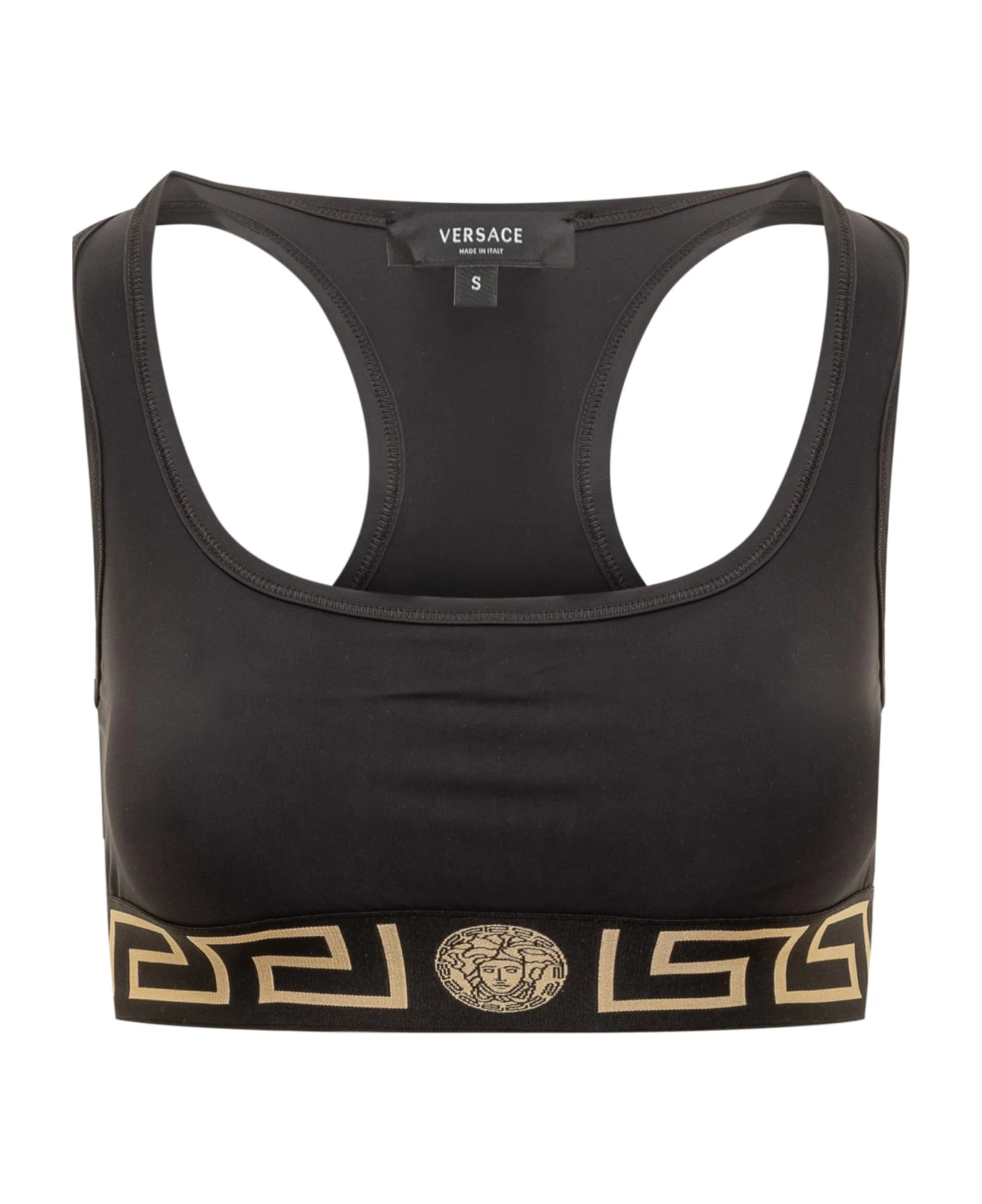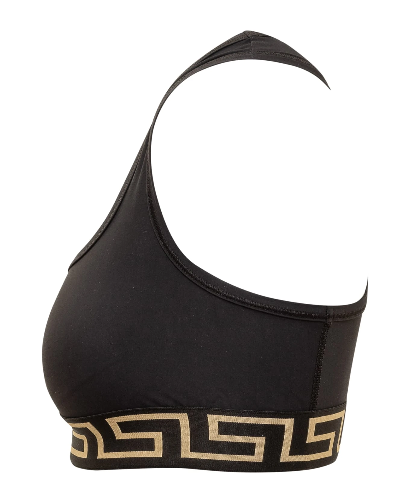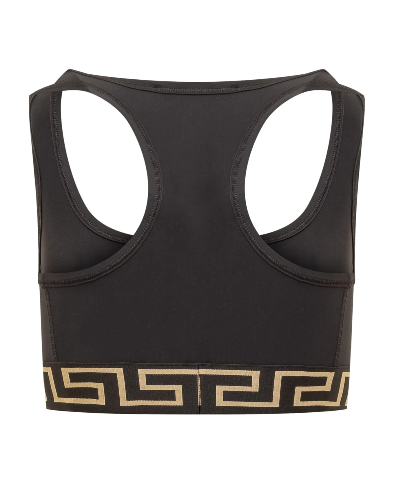 Elasticated top. Sleeveless. U-neck. Elastic bottom with Greek pattern.