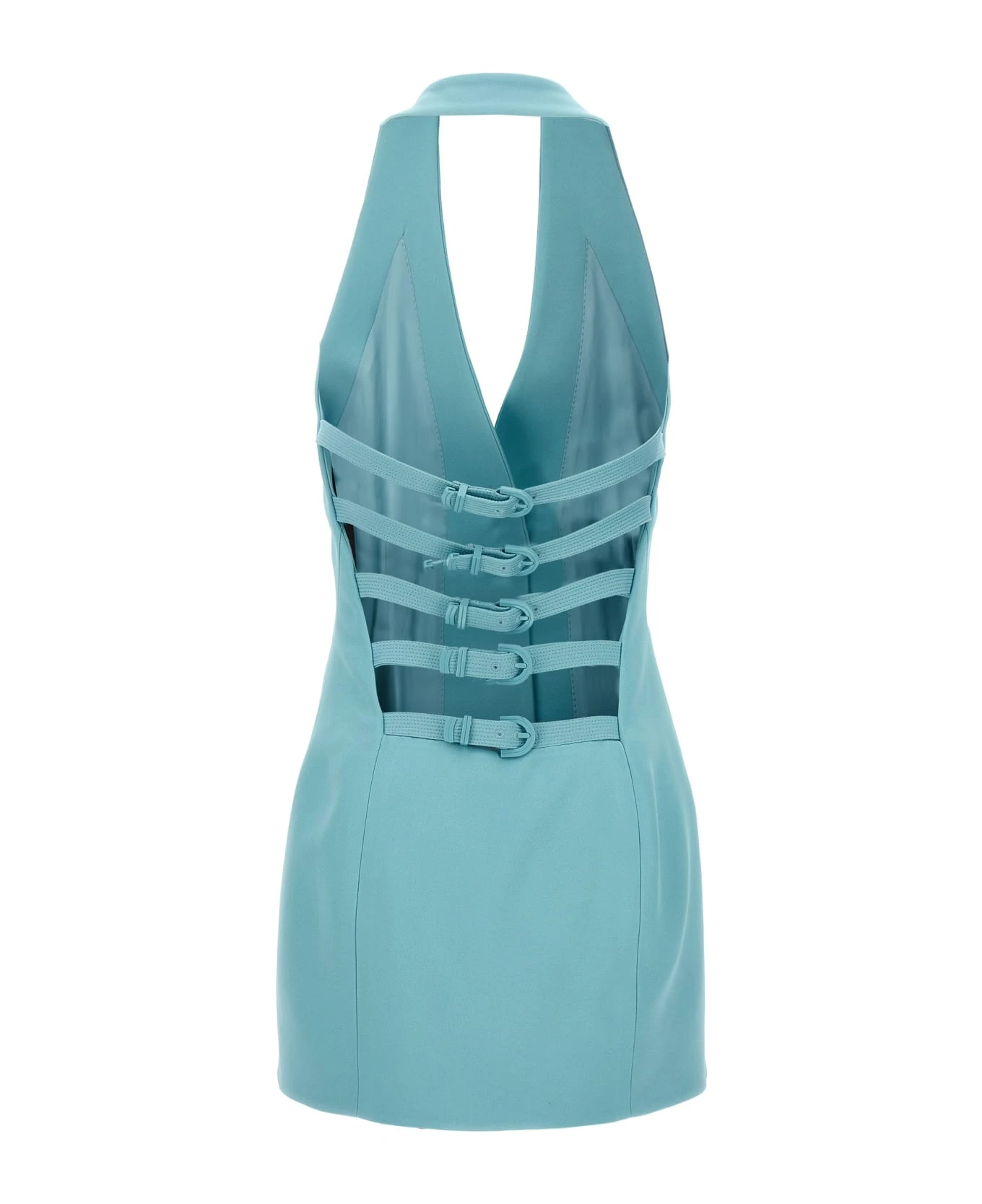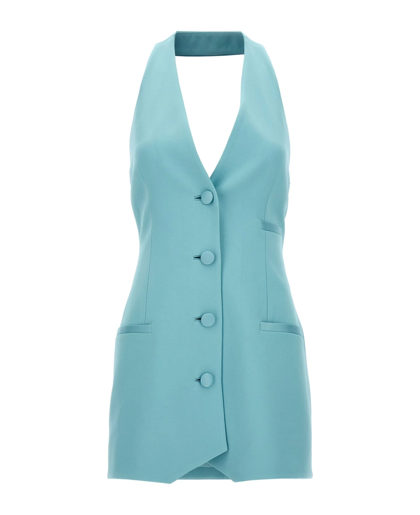Viscose blend vest dress, rear adjustable strap detail, pockets, V-neck.